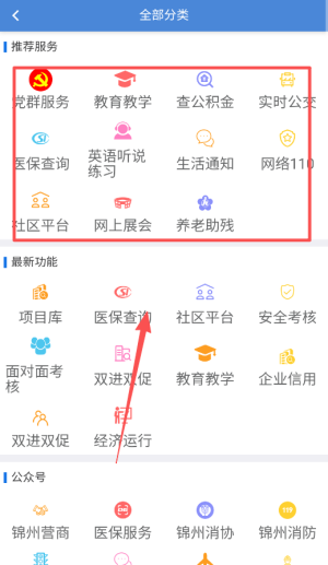 3、首頁推薦服務板塊提供黨群服務、教育教學與公積金查詢等功能,可按需選擇。